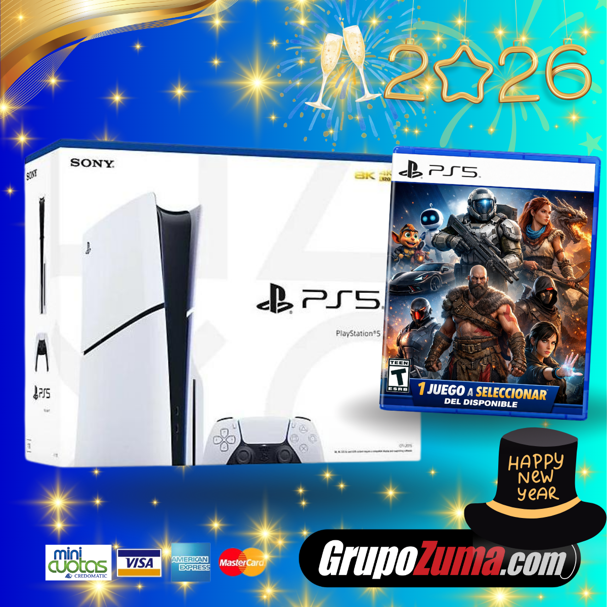 PS5 SLIM DISCO & DIGITAL + 1 JUEGO A SELECCIONAR DEL DISPONIBLE