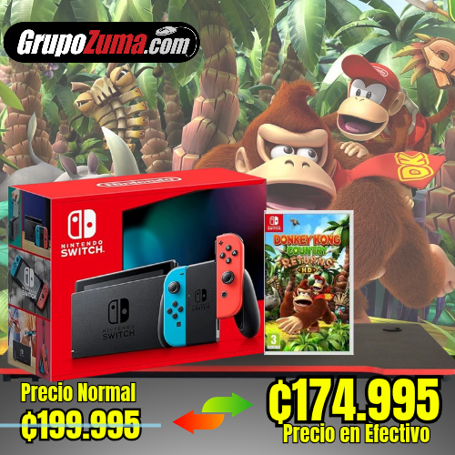 NINTENDO SWITCH V2 CON EL JUEGO DE DONKEY KONG COUNTRY RETURNS HD.