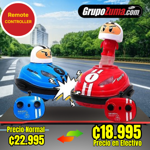 Es un pack con 2 carritos a control remoto, cada uno con su control independiente. Al chocar el chófer del carrito sale expulsado. Jugar es muy divertido, trata de que no te choquen ya que el perdedor saldrá volando.